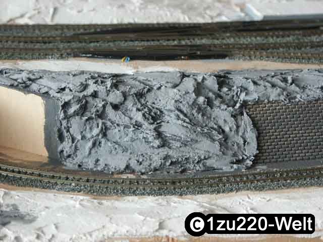 Diese wurde schon aus Gips bzw. Innenspachtel mit der Landschaft zusammen gestaltet. Um eine vorbildgerechte