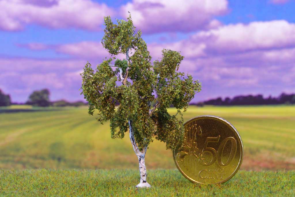 Birken finden sich auf der kompletten Nordhalbkugel. Sie wachsen sehr schnell und können eine Höhe von 30m erreichen. Sie sind sehr anspruchslos und wachsen in den unterschiedlichsten Böden. Auch das Erscheinungsbild ist weit gefächert, von großen Solitärbäumen bis hin zu ganzen Wäldchen mit mehreren Stämmen auf kleiner Fläche ist alles dabei. Daher sind sie ideal, um auf der Modellbahn nachgebildet zu werden.