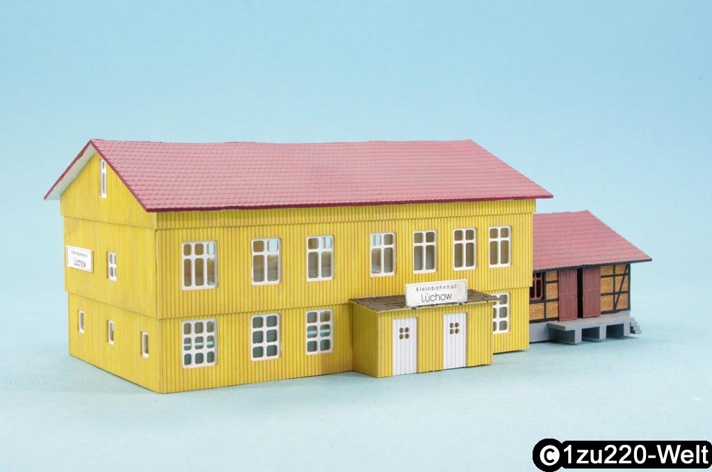 Auf der Suche nach einem geeigneten Motiv bin ich im Eisenbahn-Magazin Ausgabe 9/1984 auf den Gleisplan des Kleinbahnhofs "Lüchow" gestoßen. Dieser kleine Endbahnhof mit Anschluss an die Hauptbahn lässt sich mit einigen kleinen Änderungen sehr gut als Durchgangsbahnhof für die ZFE-Norm einsetzten. Hier möchte ich nun mein Modell des Empfangsgebäude von Lüchow vorstellen.