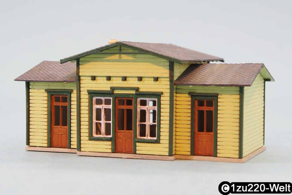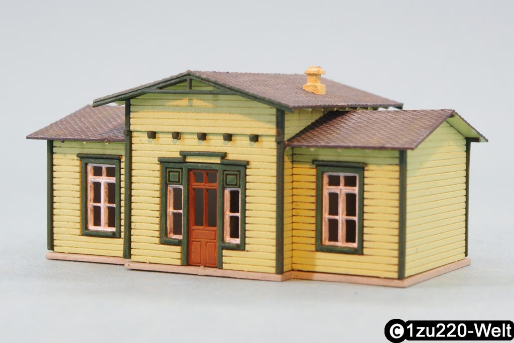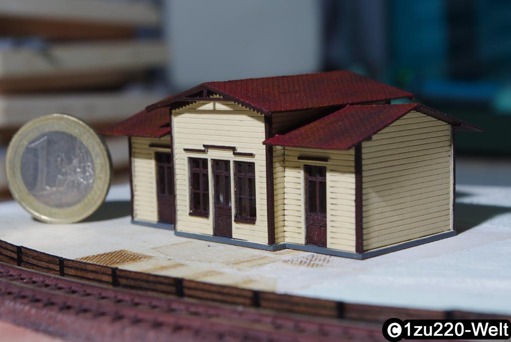 Nachdem der Schuppen so gut geklappt hat, wollte ich ein etwas anspruchsvolleres Projekt versuchen. Für die Stammtisch-Module brauchte ich eh noch einen Bahnhof, also wurde dafür ein passendes Modell gesucht und konstruiert. In meiner Pläneschublade bin ich dabei auf eine Zeichnung des Bahnhofs von "Deinste" an der Bahnstrecke Stade-Bremervörde aus dem Eisenbahn Magazin 11/1977 gestoßen. Dieser Bahnhof ist eigentlich mit einem Stellwerksvorbau und Güterschuppen verbunden, die ich aber beide für mein Modell großzügig übersehen habe.
