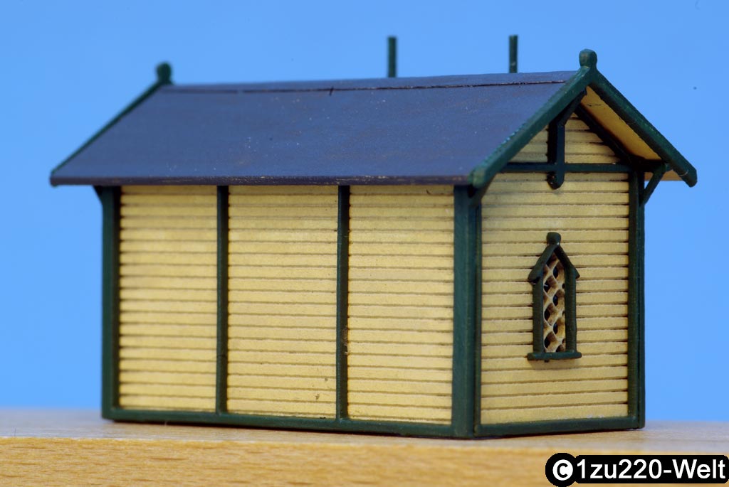 Nachdem ich den Bahnhof Deinste in einem Forum vorgestellt habe, erhielt ich von einem der Mitglieder die Anfrage, ob ich ihm eine spezielle Wartehalle in unserem Maßstab umsetzen könne. Da mir das Modell selbst gut gefallen hat und noch feinere Elemente eine weitere Herausforderung waren, sagte ich zu.
