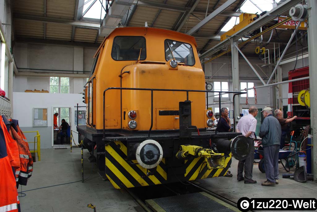 Blick in die Werkstatt   ex. DR V100 der Hessischen Güterbahn   Die Warnweste steht Karl-Heinz gut
