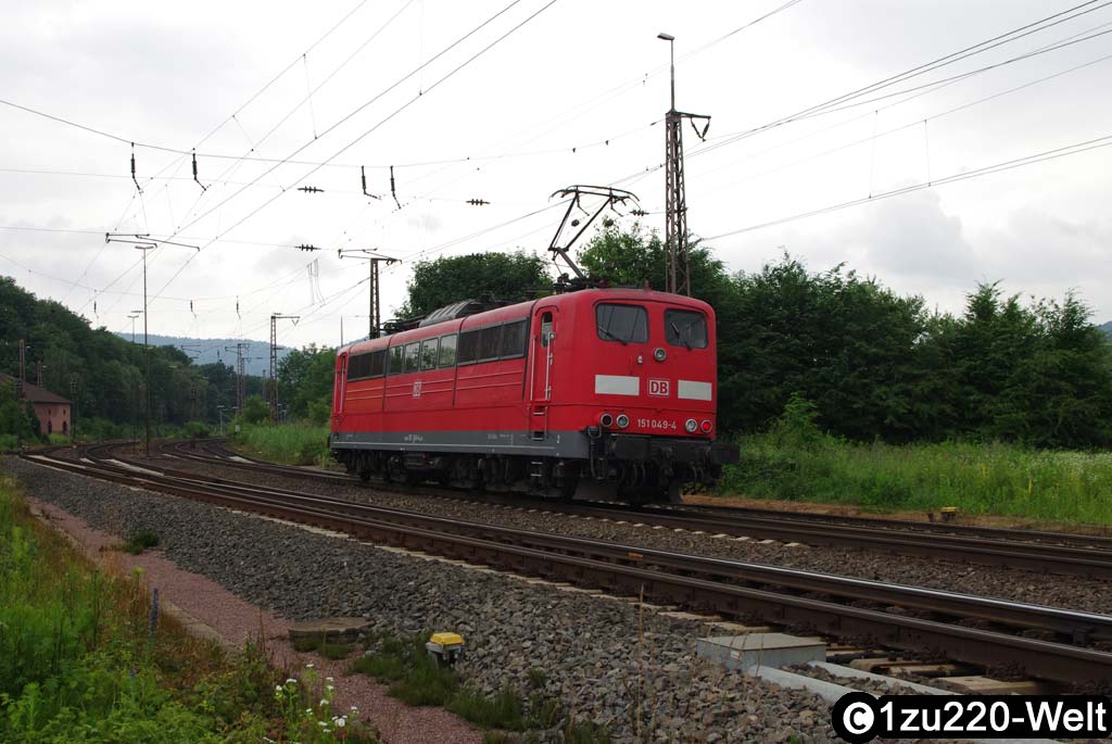 Kaum den Lokwartegleisen gegenüber angekommen, sahen wir, dass 151 086 sich hinter einen Güterzug im Bahnhof setzte, während 151 049 aufrüstete. Da rumpelte von Aschaffenburg ein weiterer schwerer Güterzug in das Nachbargleis des gerade anfahrenden ersten Zuges. Sogleich setzte sich 151 049 dahinter. Wir fuhren weiter zum Bahnhof, und da der zweite Zug noch eine Zugdurchfahrt abwarten musste, konnten wir dessen Ausfahrt in Ruhe fotografieren und filmen.