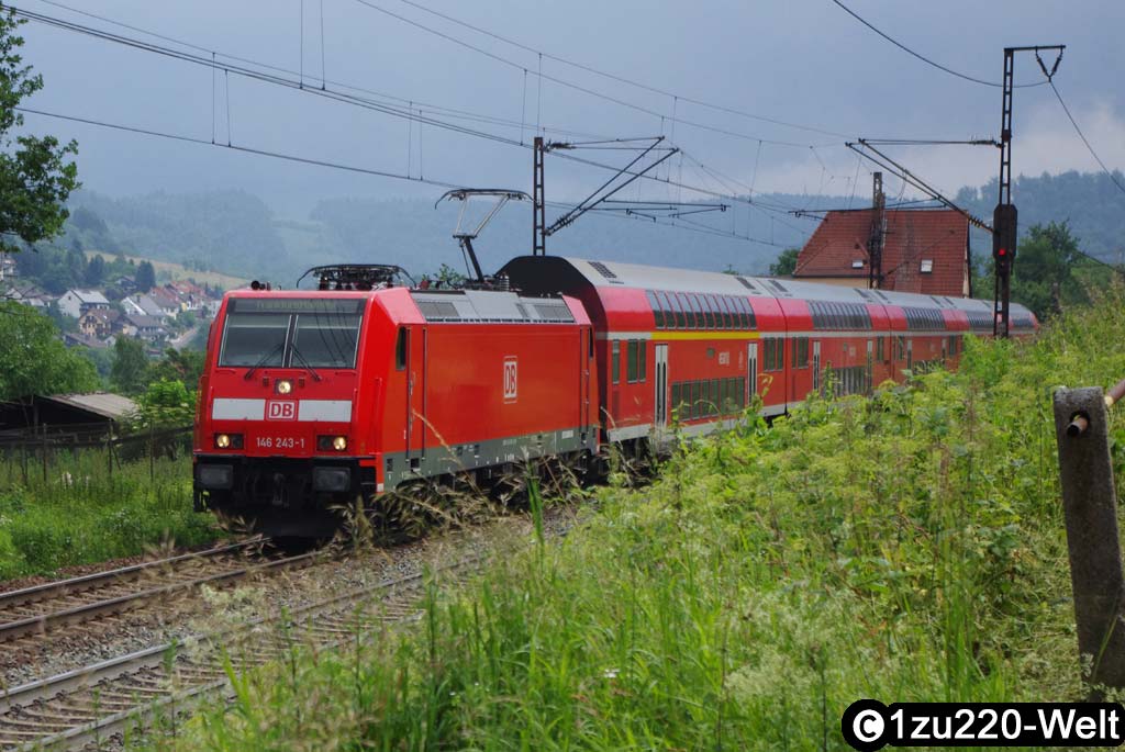 und die allgegenwärtigen Doppelstockzüge, hier mit 146 243   und endlich der versprochene Henkelzug mit 139 287